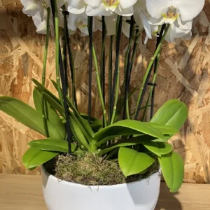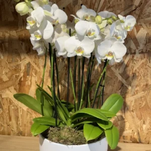 Centro con phalaenopsis blanca en base ceramic white.