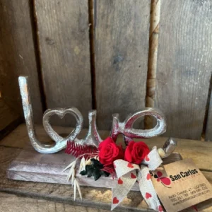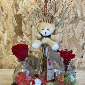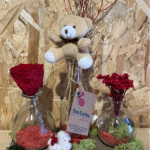 Rosa Roja eterna en bandeja con 3 jarrones.