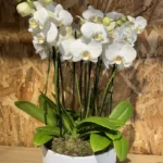 Preciosa composición de plantas con 4 Phalaenopsis en color blanco como planta principal.