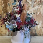 Este centro destaca por su durabilidad. Las flores secas y preservadas conservan su belleza durante mucho tiempo, permitiendo disfrutar de un detalle decorativo sin necesidad de cuidados especiales. Es ideal tanto para decorar interiores como para regalar, ya que combina estética y practicidad