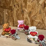 La combinación de la rosa preservada, el osito y la base de madera natural crea un regalo que trasciende la decoración, convirtiéndose en un recuerdo duradero y significativo, perfecto para demostrar todo tu cariño.