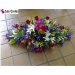 Arreglo elaborado con Rosas rojas, Lilium L.O. blanco, Iris, Margaritas y Solidago. Su combinación de colores vivos y flores de alta calidad aporta presencia, armonía y un toque de elegancia a este homenaje floral.