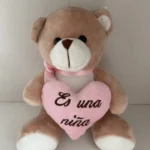 Este precioso osito de peluche marrón, con un corazón rosa, es perfecto para dar la bienvenida a una bebé. Su diseño suave y amoroso lo convierte en un detalle entrañable que transmite ternura y cariño.