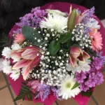 Bonito ramo compuesto por flores variadas en tonos blancos y rosas. La combinación de estos colores transmite elegancia, ternura y frescura, convirtiéndolo en un detalle que encantará a quien lo reciba.