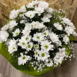 Precioso ramo compuesto por margaritas blancas, un clásico que transmite pureza, inocencia y juventud. La selección de flores permite disfrutar de un conjunto armonioso y natural, ideal para aportar frescura y sencillez a cualquier espacio o celebración.