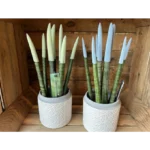 Esta preciosa Sansevieria Cilíndrica destaca por su presencia elegante y moderna, decorada con una maceta con estampado en relieve y puntas en terciopelo disponibles en varios colores. Es una pieza decorativa original que aporta estilo y frescura a cualquier espacio interior.