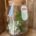 La composición incluye plantas cuidadosamente seleccionadas y otros elementos naturales que aportan textura y color al conjunto. Este Terrarium no solo decora, sino que también se mantiene vivo durante mucho tiempo, ofreciendo un toque verde y natural sin necesidad de cuidados complicados. Ideal para cualquier rincón de la casa, oficina o comercio.