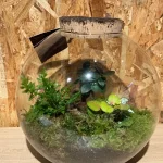 Un Terrarium o Jardín Eterno es un pequeño “invernadero” en el que se recrean las condiciones de un ambiente tropical, con humedad alta y temperatura constante. En él conviven elementos vegetales, minerales y microorganismos, creando un ecosistema cerrado que se autoabastece de manera natural.