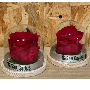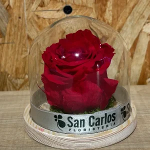 Cúpula con rosa preservada roja.