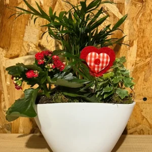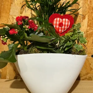 Maceta blanca Love con plantas.